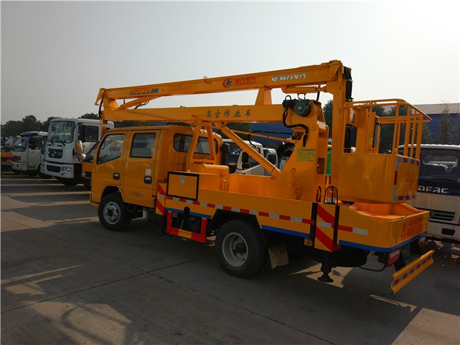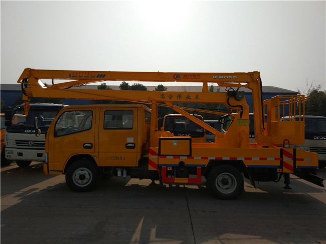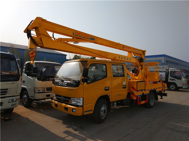 東風(fēng)凱普特12米14米16米高空作業(yè)車采用折疊式曲臂結(jié)構(gòu),作業(yè)臂12米為兩節(jié)折疊式14米16米為三節(jié)折疊式,工作斗和轉(zhuǎn)臺(tái)雙工作位,上下操作,液壓手動(dòng)控制,可360度回轉(zhuǎn),四液壓支腿,帶1噸吊鉤,工作斗大承重200公斤,鋼制工具箱及圍板、花紋防滑走臺(tái)板。