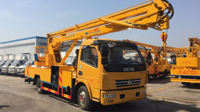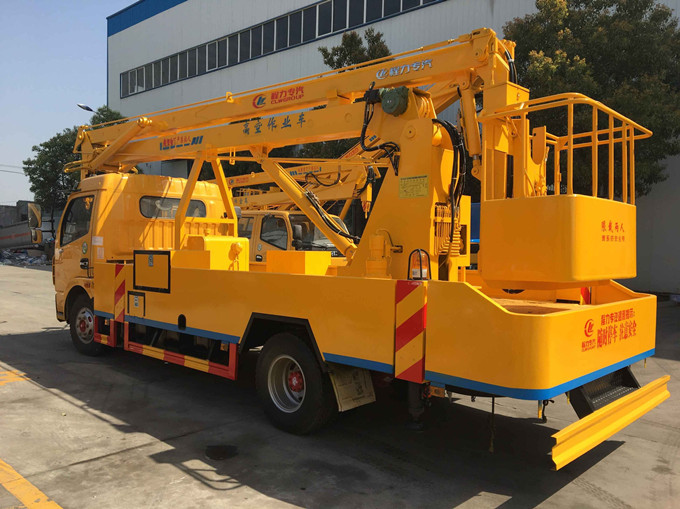 東風大多利卡18米高空作業(yè)車采用折疊式曲臂結(jié)構(gòu),作業(yè)臂為三節(jié)折疊式,工作斗和轉(zhuǎn)臺雙工作位,上下操作,液壓手動控制,可360度回轉(zhuǎn),四液壓支腿,帶1噸吊鉤,工作斗大承重 200公斤,鋼制工具箱及圍板、花紋防滑走臺板。
