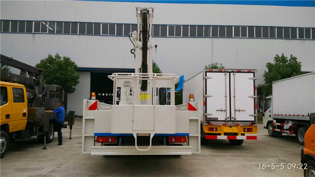 東風(fēng)天錦22米高空作業(yè)車采用折疊式曲臂結(jié)構(gòu),作業(yè)臂為三節(jié)折疊式,工作斗和轉(zhuǎn)臺雙工作位,上下操作,液壓手動控制,可360度回轉(zhuǎn),四液壓支腿,帶1噸吊鉤,工作斗大承重200公斤,鋼制工具箱及圍板、花紋防滑走臺板。