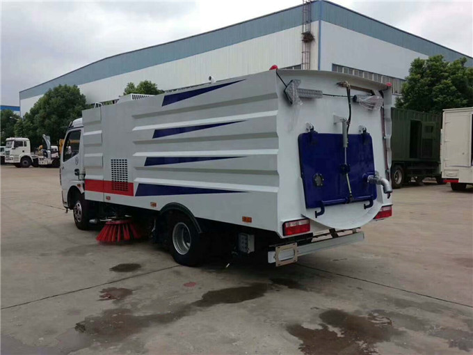 1. 東風(fēng)多利卡洗掃車采用洗,掃,吸,混合的方式收集垃圾,濕式除塵、電液PLC一鍵控制,液壓傾翻卸料的作業(yè)方式對路面進行清掃作業(yè)。
